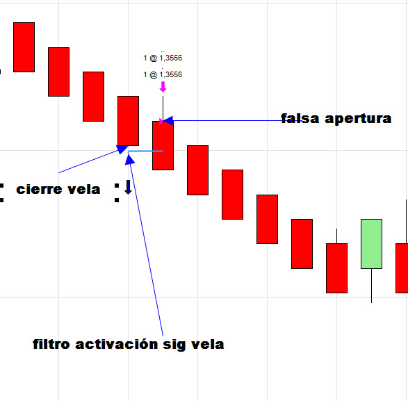 Hay un cierre de vela y el sistema entra corto, la entrada la hará en la apertura de la siguiente vela, como es lógico.