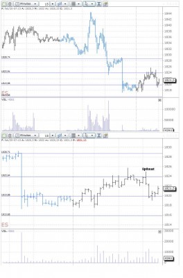 yo le veo ahora a las 14:27min muy bajista. De hecho hasta no verlo por encima del 1828 ni me plantearía el largo. En estos momentos.