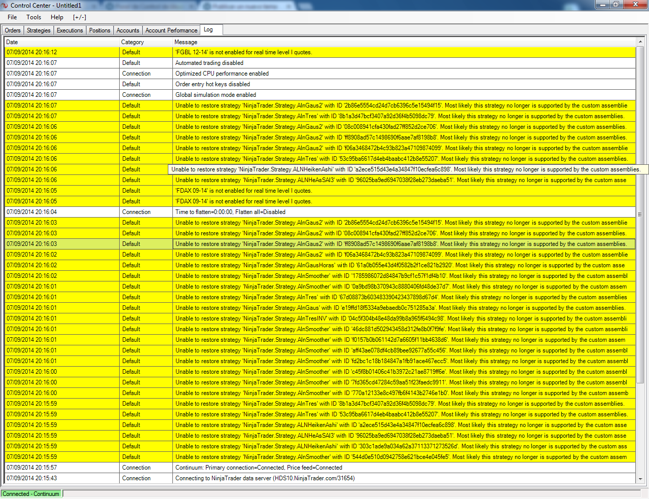Hola, he eliminado algunos sistemas que no utilizaba del NinjaTrader y aún me salen en el log en amarillo como un error, quisiera saber como eliminarlos.