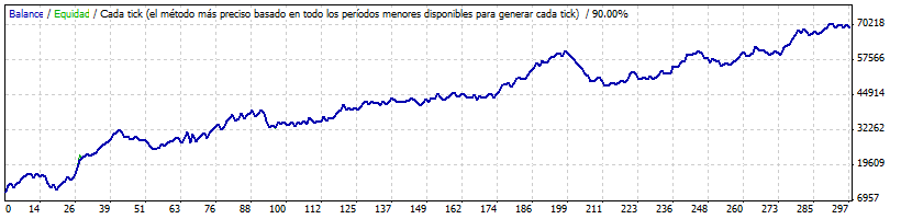 Seleccionando alguno de los mejores puntos y "cargando un poco" de lotes (4 lotes para 10.000 EUR) obtenemos este resultado para un backtest en el mismo periodo: