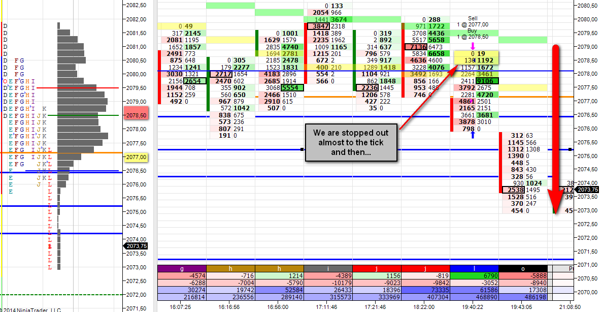 Hoy se ha realizado un trade perdedor. Se ha operado correctamente y me voy con una sensación agridulce...ya que por una parte como he comentado he operado bien y me voy con una perdida pequeña (6ticks) y por otro lado el mercado ha tocado mi stop y luego me ha dado la razón.