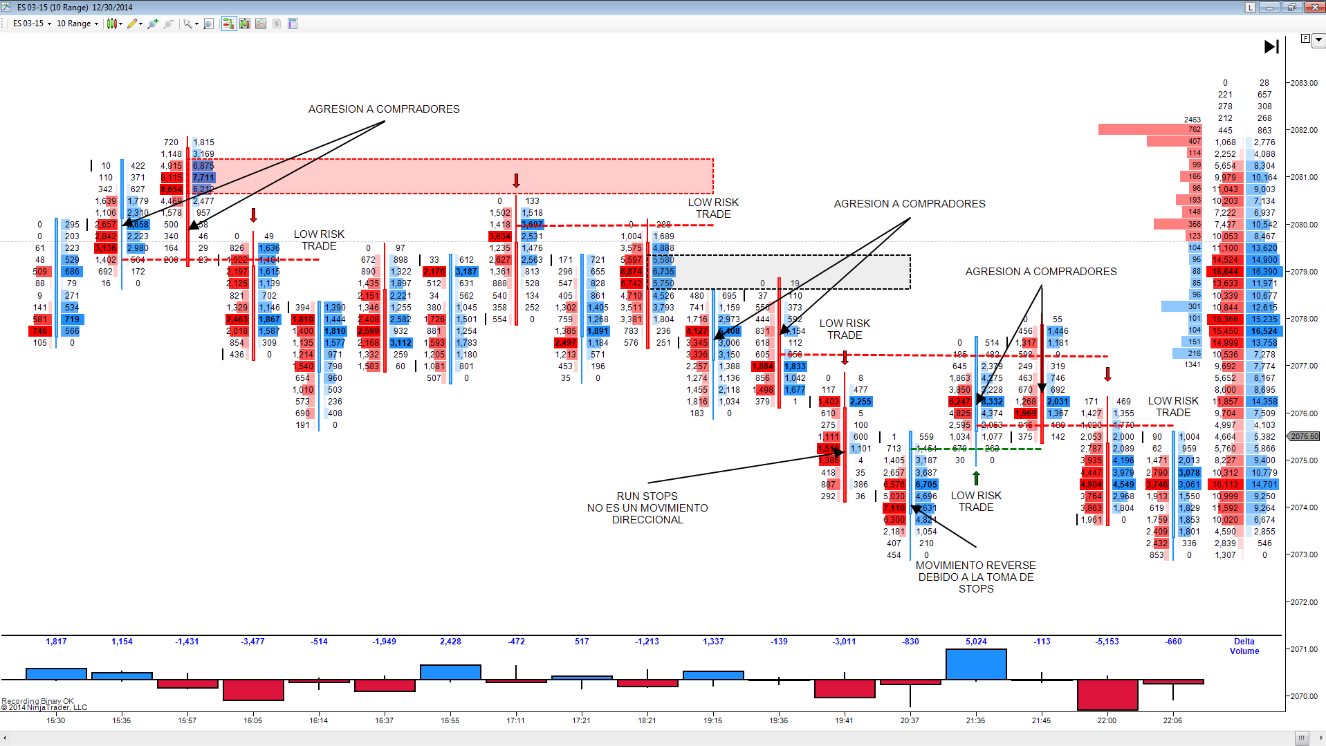 La verdad es que en tiempo real la toma de decisiones es muy complicada, pero el análisis objetivo que te dan los footprint charts te ofrece una muy buena base para estar muy bien orientado en cuanto a que fuerza es la que mas predomina y por tanto que lado es el mejor