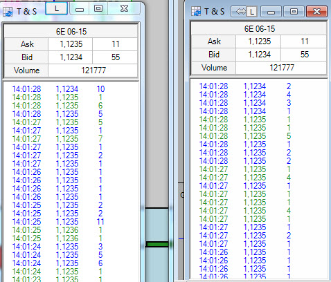 CqG ya ha migrado a MDP , se nota bastante los paquetes que van llegando en el Time/Sales, ya que al tener dos datefeeds CQG e IQFeed, la diferencia es exagerada.