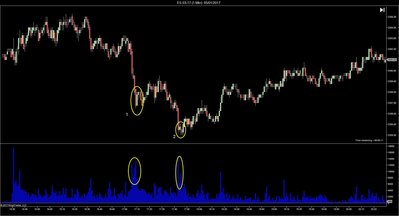 La cinta, order flow o cualquier tipo de lectura de volumen lo que nos intenta decir es donde se situan los pros, que son los que tienen infintamente mas dinero que nosotros y compran grandes cantidades.