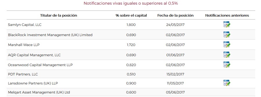 Aqui la lista de las maiores posiciones cortas actualmente en curso en popular