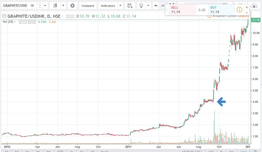 Desde que publique este mensage Graphite india subio desde 4 asta 11USD