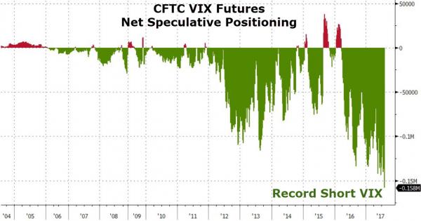 - Por un lado, tenemos posiciones vendedoras de volatilidad en el VIX en máximos históricos (158.000 contratos abiertos):