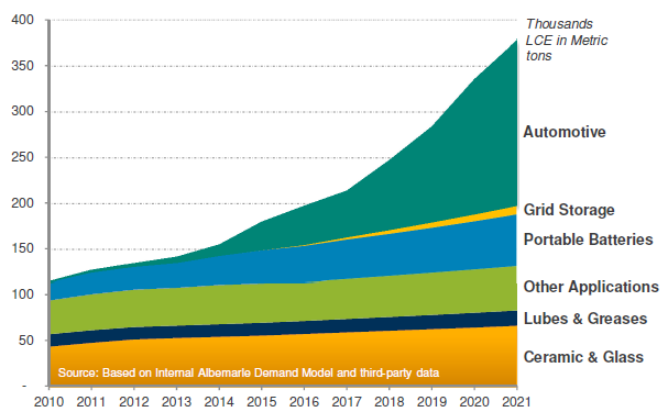Esse fato ace que el consumo de lithio suba conforme la penetracion del coche electrico