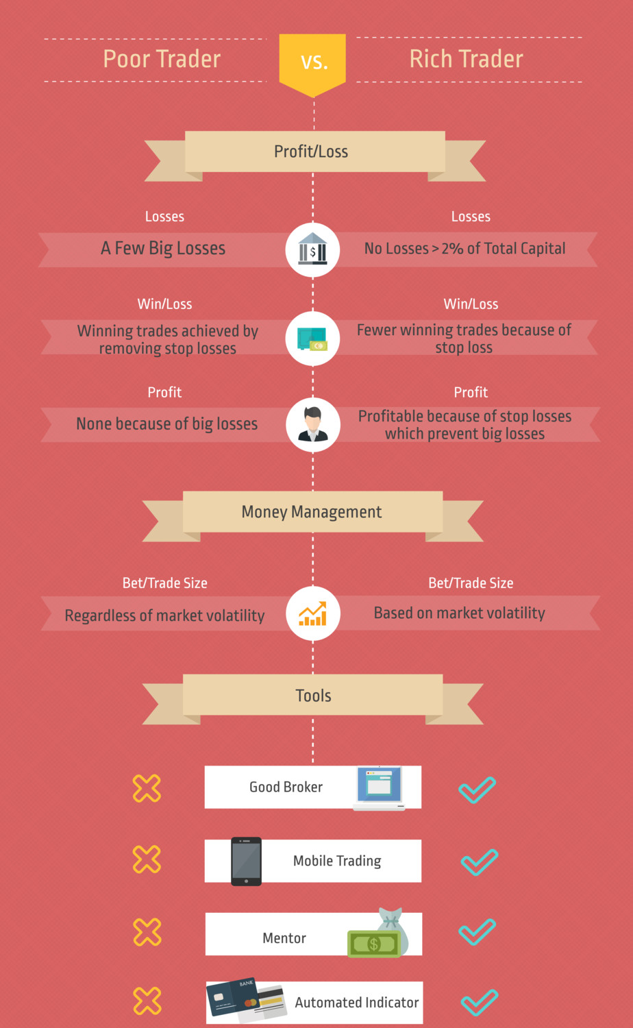 Me ha gustado mucho esta infografía de Alpesh Patel en la que compara los diferenes aspectos que diferencian a un trader ganador de uno perdedor, os la dejo por aquí: