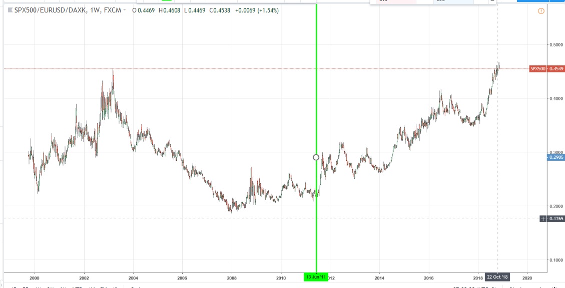 El mysmo grafico de arriba y la linea roja el DAX ajustando-lo a la inflacion