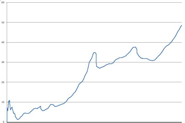 Creo que cuando vemos unos cuantos datos, vamos a terminar concluyendo que se lo ha podido permitir, pero no se puede decir que BRK haya tenido DDs bajos: dos veces, del treinta y muchos por ciento, y otras dos de casi el 50 y algo más del 50%, concretamente, su
