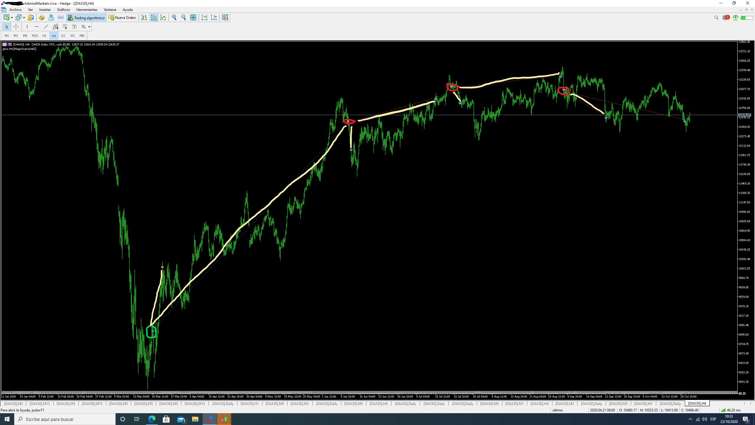 Ambas son entradas de sistemas automáticos de giros (no el mismo) . Esta claro que no son a favor de la tendencia, y que eso baja la probabilidad de acierto, pero con mas de 1000 puntos de caida en la semana, no me parecieron malas entradas.