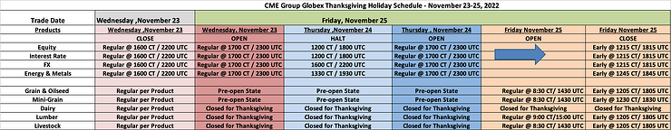 Por si os resulta de utilidad, aquí os dejo un resumen de los horarios de los mercados americanos que varían con motivo de la festividad de Acción de Gracias.