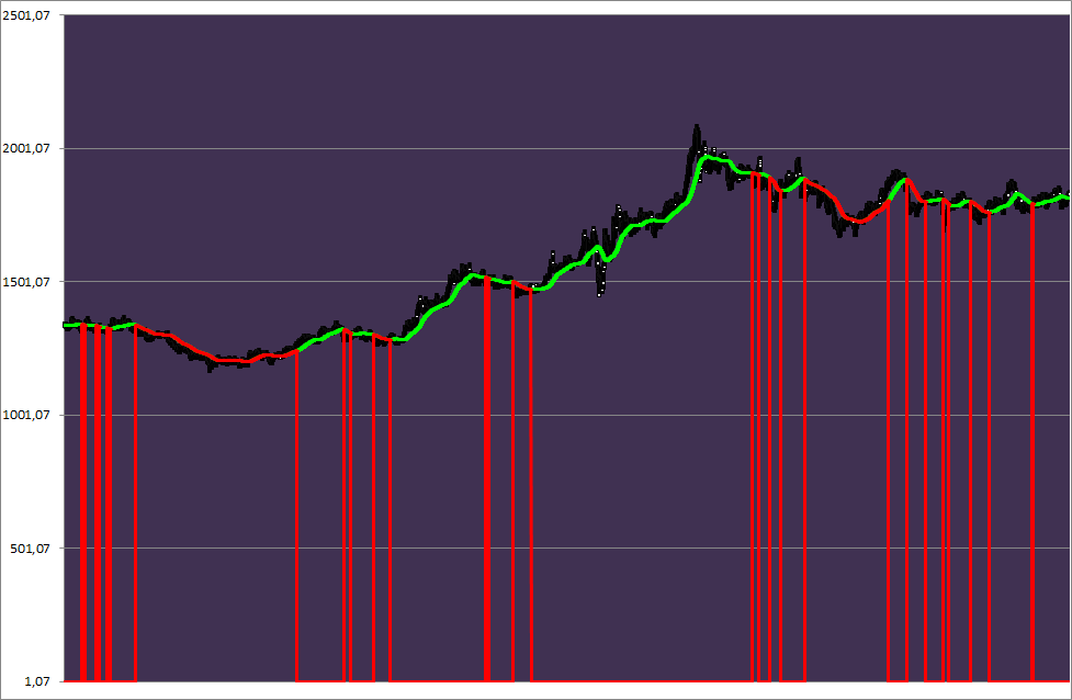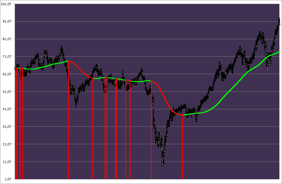 Se utiliza unos tipos alisados exponenciales y no cualquier tipo de seguimiento de precio como pudiera ser una media, porque confiere una excepcionalidad es emplear el mismo parámetro para cada activo, sin que haya diferencias extensibles en su aplicación, sólo hay divergencias significativas y no en todos los activos cuando las volatilidades son extremas pero la experiencia me demuestra que es mejor soportar en periodos una volatilidad extrema que definir unos parámetros exclusivos para el evento.