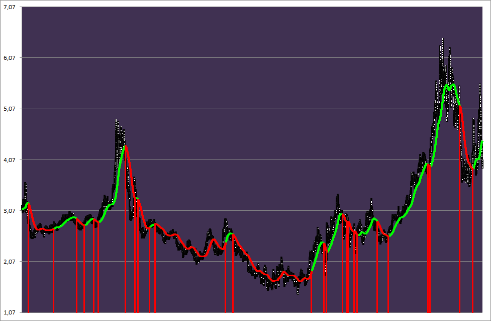 Hola a todos, hace varios años que no inicio ningún tema, pero hoy me he dedicado a examinar el método que utilizo para la determinación de la tendencia y sus cualidades para sistemas tendenciales y quizás pueda ser interesantes mi enfoque para los sistemas de tendencia.