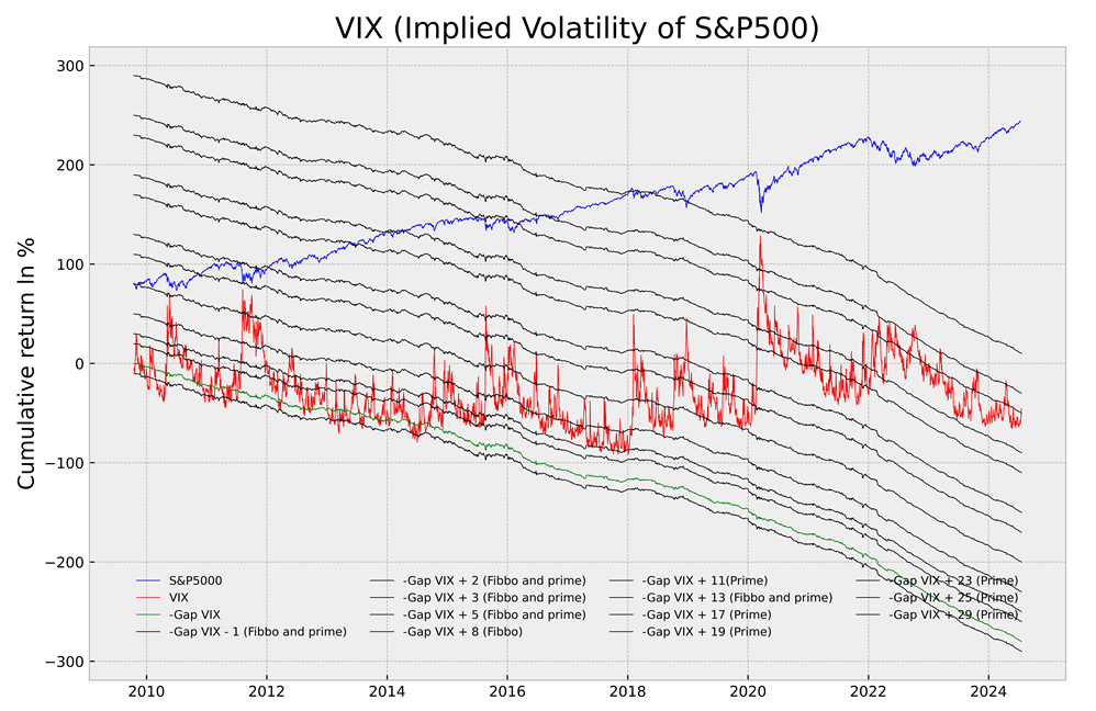 Sin embargo, y como decía anteriormente, los mejores modelos son aquellos que emplean los gaps de apertura de índice de volatilidad, y no los del propio índice, ya que empleando la serie de Fibonacci y números primos se es capaz de detectar muchos mas mínimos de mercado (aunque no sepamos a prior, en que banda se va a girar el índice de volatilidad)