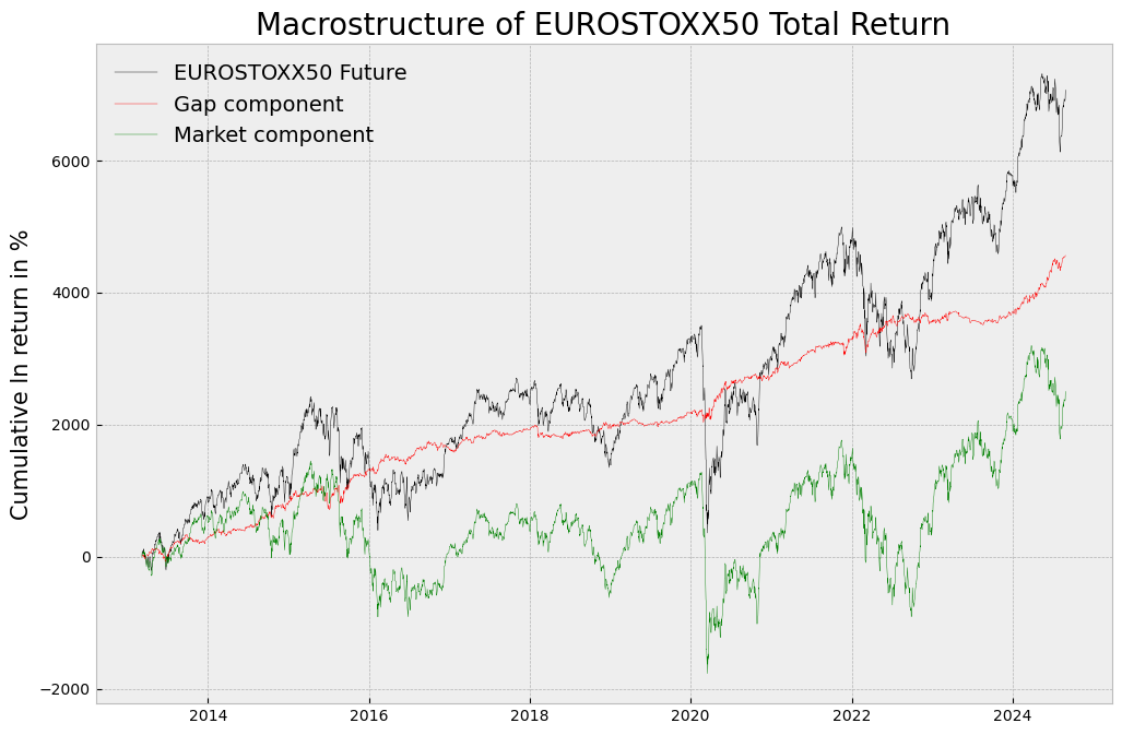 Como siempre, no busco relaciones del mercado total, eso lo hacen todos, y ellos ya han encontrado cosas, no soy mas listo que ellos, así que busco donde yo se, el los gaps de apertura, o segregación del mercado total (lo que ellos investigan), como suma del componente Gap y Market.