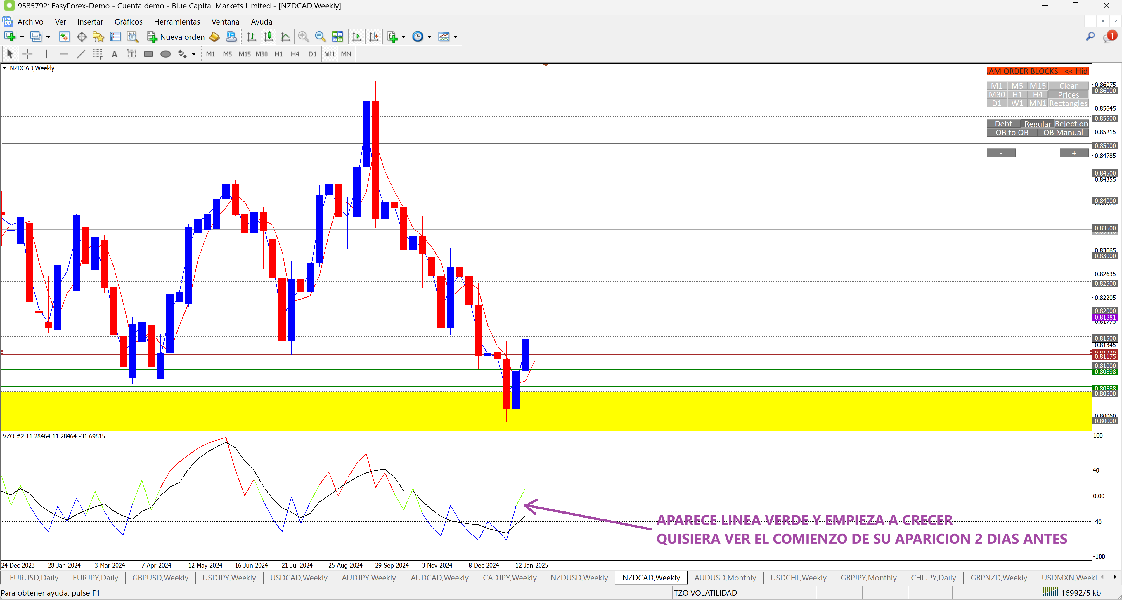 Me explico mejor, la linea verde apareció el 21 de enero y quisiera que aparezca entre el 16 al 17 de enero. Solo verla aparecer sin considerar cruces ni nada. Solo que aparezca la linea verde en weekly
