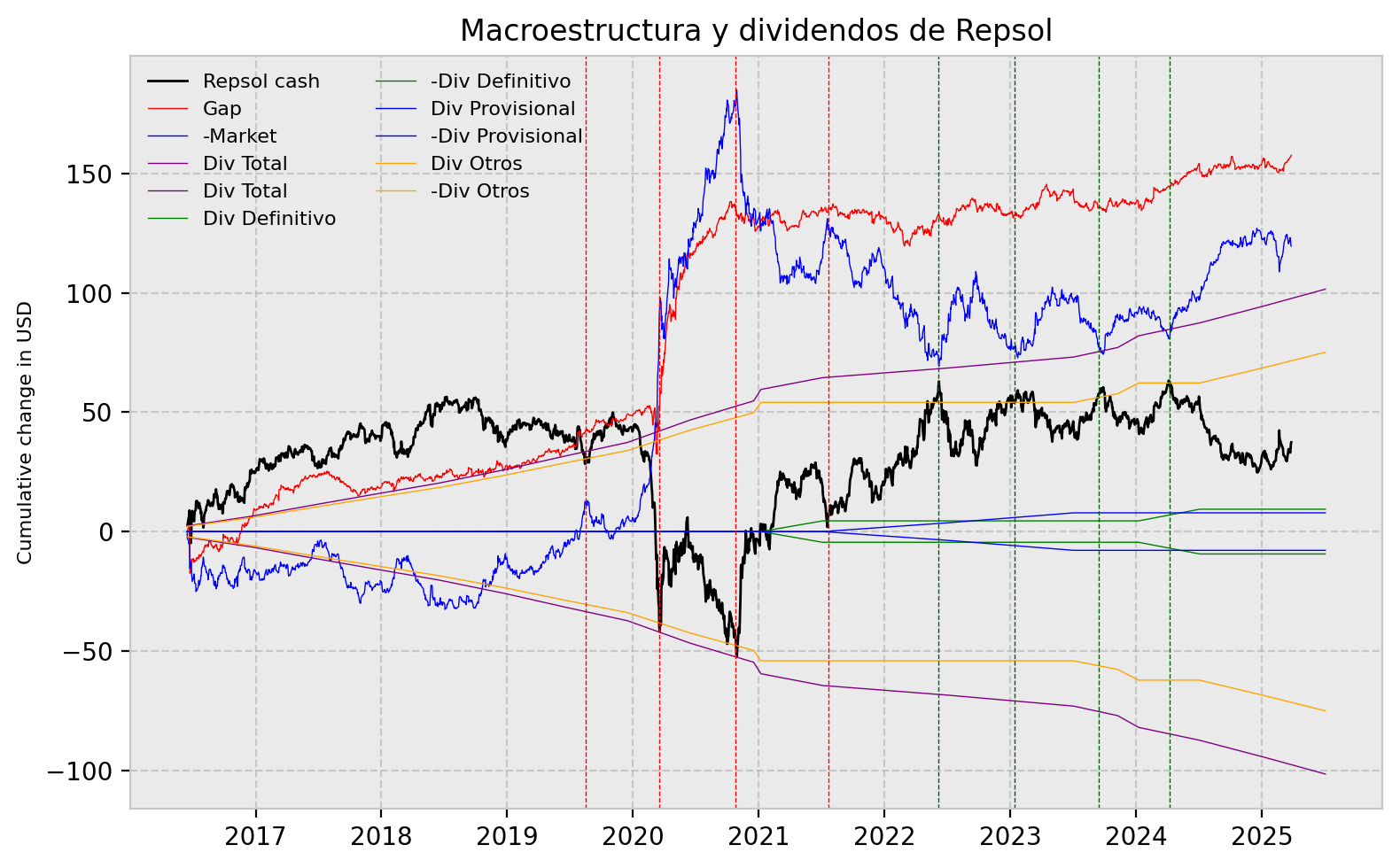 Hasta el las "luisvis" tenemos claros punto de giro del mercado ante el choque de la Macroestructura con la cuerva de la rentabilidad acumulada de sus dividendos.
