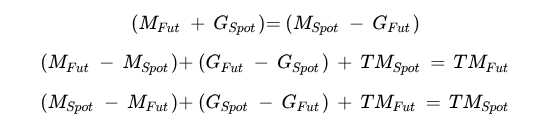 Estas fórmulas permiten equilibrara componentes GAp y Market entre el futuro y el contado de un activo concreto, y aplicándolas al caso del DAX40 cash y future, así se demuestra (columna amarilla y verde)