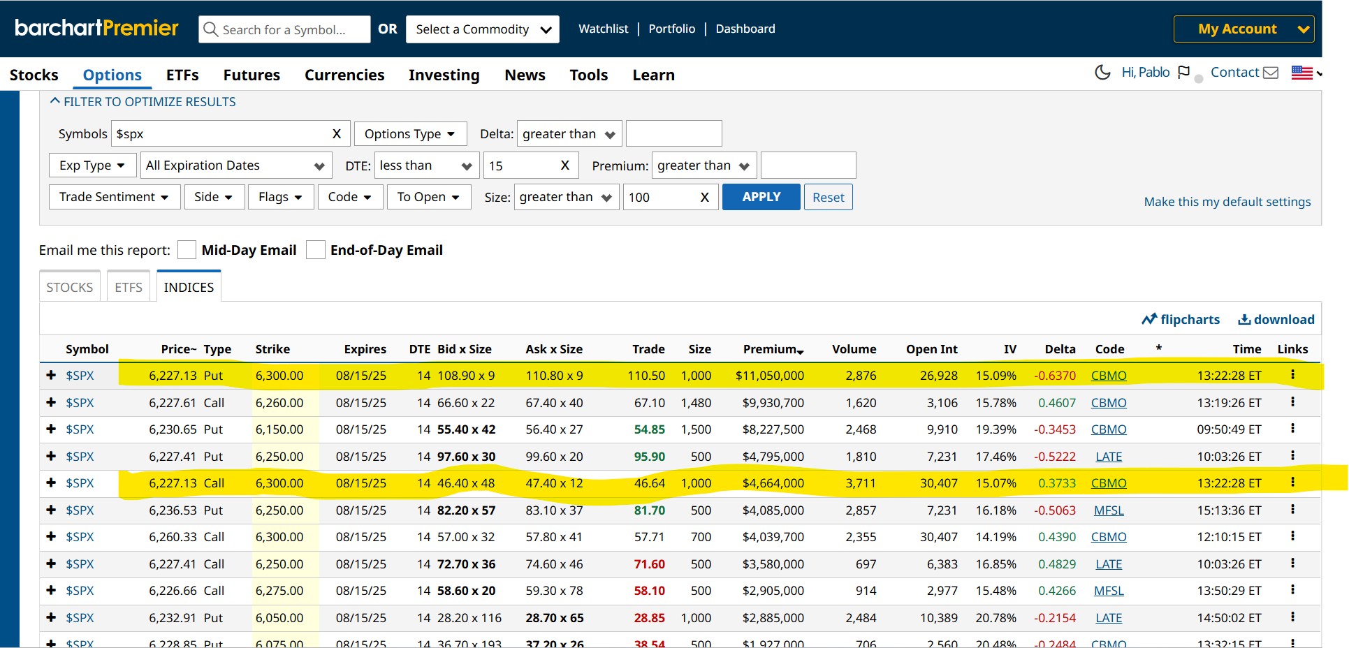 Y un cono 6250 vendido con el precio en 6227.41 con primas algo más pequeñas, pero considerables.