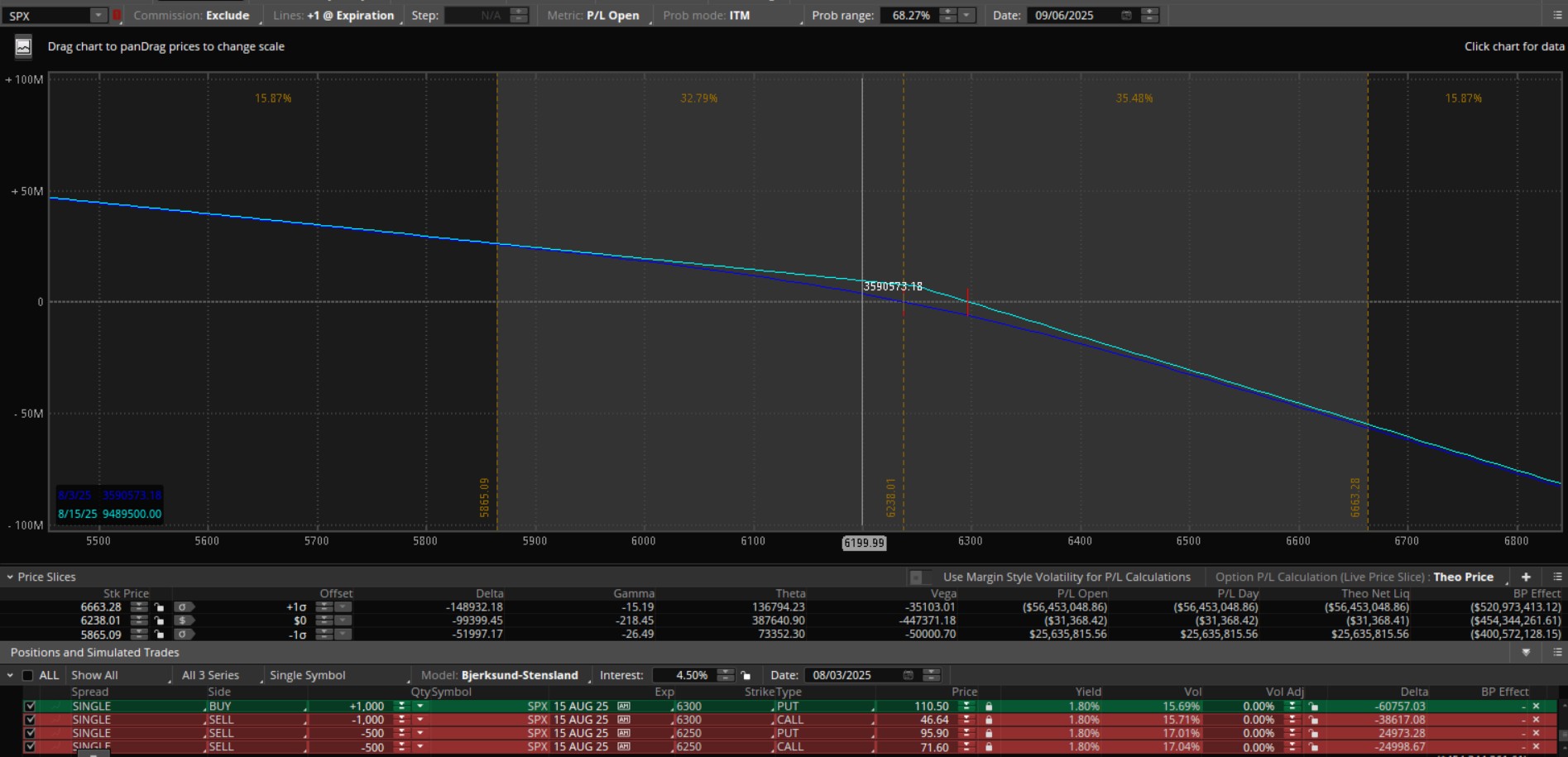 A mi en estos entornos me gusta más los spreads a débito en los que el aumento de volatilidad les beneficia y con movimientos amplios es fácil que te lo lleves entero. También mariposas de puts OTM pueden funcionar, aunque hay que medir más fino.