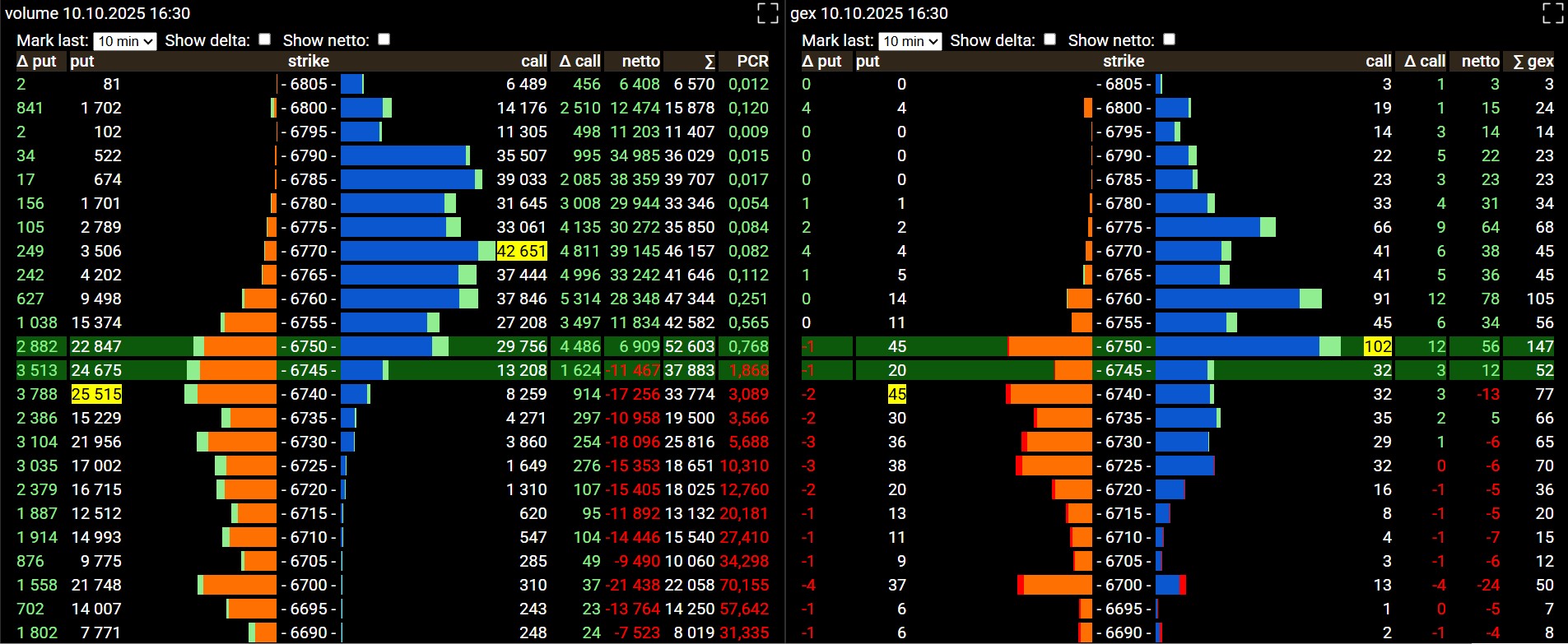 Y aquí la confirmación. Ya todo el volumen de calls es vendido y las puts compradas. Además en el Gex el rango se amplía por abajo. Bajista a tope.