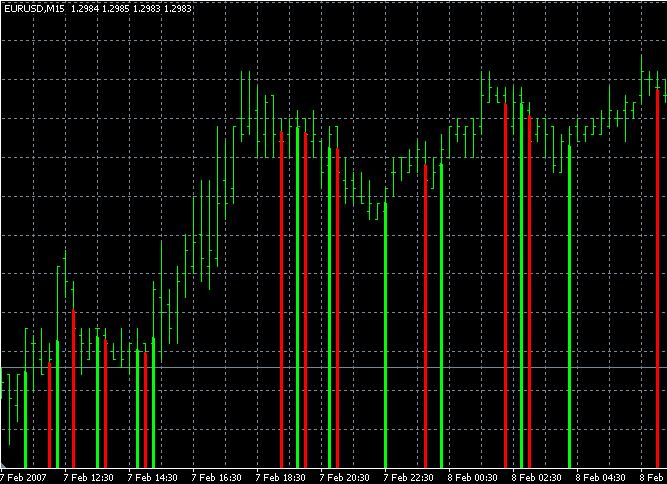 El funcionamiento es sencillo, he dejado el indicador solo con los indicadores justos, (jeje es que parecía una feria).... cuando aparece una barra verde es señal de compra, y si es roja, la señal es de venta, de todas formas te avisa de las entradas, como una imagen vale mas que mil palabras...
