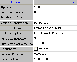 En algún sitio he leído que el "slippage" del Fibex se puede calcular en 1.3 y entonces he configurado el VisualChart para que me haga los cálculos con ese parámetro. Adjunto el fichero en el que se ve cómo lo he hecho para que, si sois tan amables, me digáis si lo he hecho bien o no.