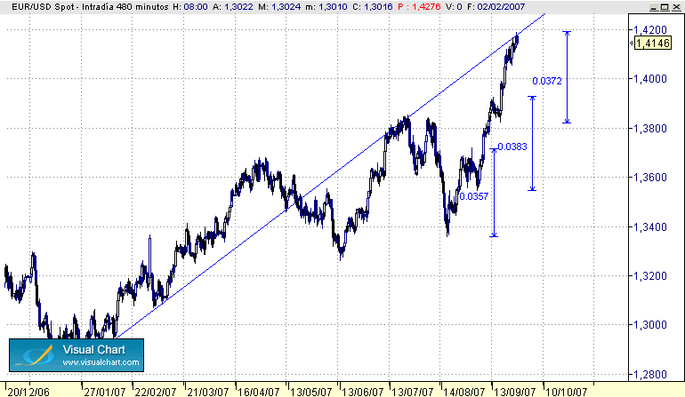 Este triangulo es de esta mañana temprano. El objetivo es 1,4239 como mínimo porque puede subir más, pero debe subir rápido y sin atascos grandes, porque es como debe hacerlo, si tontea mucho deja de ser fiable, aunque tampoco significa que al final lo termine.