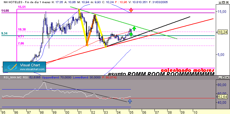 parece el despegue de un bólido?? tenemos como primer objetivo la directriz del canal alcista o quizás nos planteamos estrategia medio plazo, es decir lo que nos dure el buen tiempo, y añadimos en este punto?, como objetivo final hasta que se nos acabe el veranito o siguiente cambio horario?, tenemos nuestra querida y redondita bolli_superior...