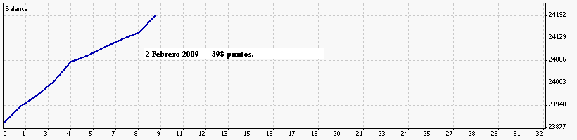 Dicho lo cual, el día de hoy si me gusta como se mueve el bicho, y la inactividad y paciencia del viernes es hoy recompensada, 7 operaciones cerradas mas o menos 300 Puntos, y el 60% de ellas fueron ganadoras, luego perdedoras para despues convertirse en mas ganadoras que en la primera fase.