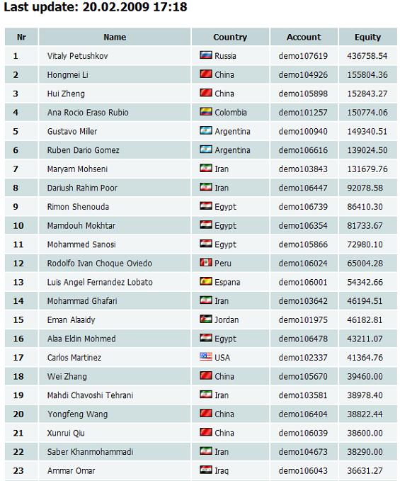 Ya he comprobado que puedo estar en el top 10 sin dosis de suerte, quizás ese sea mi posición natural, pero el ansia de superación hace que quiera entrar en el top5 y por eso estoy arriesgando tanto. Si me conformara con el puesto 25, hace 3 ó 4 días que hubiera dejado de operar y estoy casi seguro que con 80.000 ó 90.000$ estaría muy arriba, entre el puesto 10 y el 15, calculo yo.